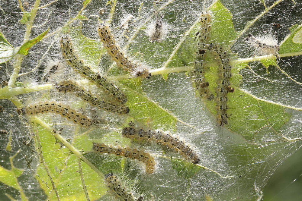 - Под ветвями можно расстилать перед стряхиванием ткань или газеты, а всего проще пленку, с которой гусеницы легко сметаются в ведро, затем отправляются в печь или в костёр.