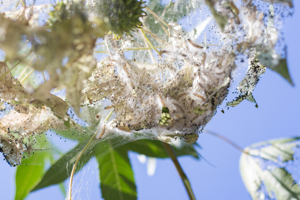 Если клёны облеплены паутиной сверху донизу, то хорошо бы их выпилить и сжечь здесь же, не распространяя гусениц по всему маршруту увозящих обрезки машин.