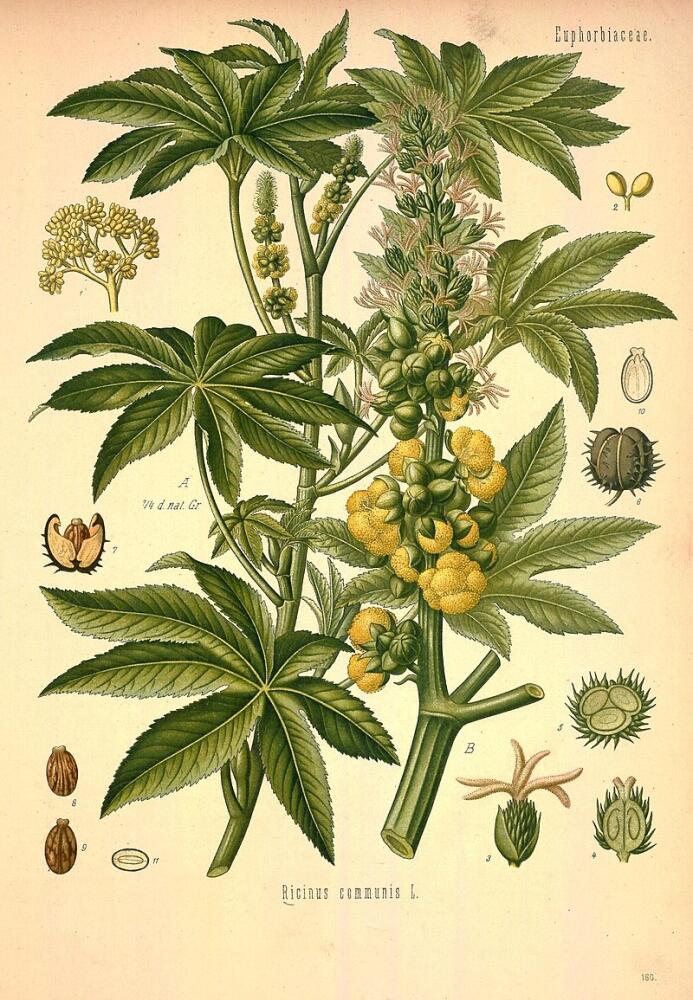 - Есть и практическая причина: клещевина — источник касторового масла. Да-да, того самого, которое веками используют как мягкое слабительное, базовое косметическое средство и защиту для кожи. Масло получают холодным отжимом из семян, а затем тщательно очищают от токсинов. При правильной технологии рицина в нём не остаётся.
