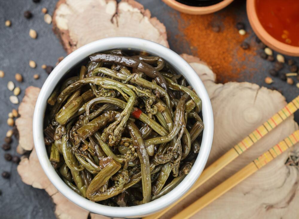 Папоротник можно заготавливать и впрок. Например, засаливать. На 1 килограмм папоротника требуется 400 г соли. Засаливать можно в стеклянных банках, укладывая слоями папоротник и соль. Сверху придавить гнетом. Однако, приготовление папоротника в дальнейшем все равно требует отварки, чтобы удалить излишки соли.