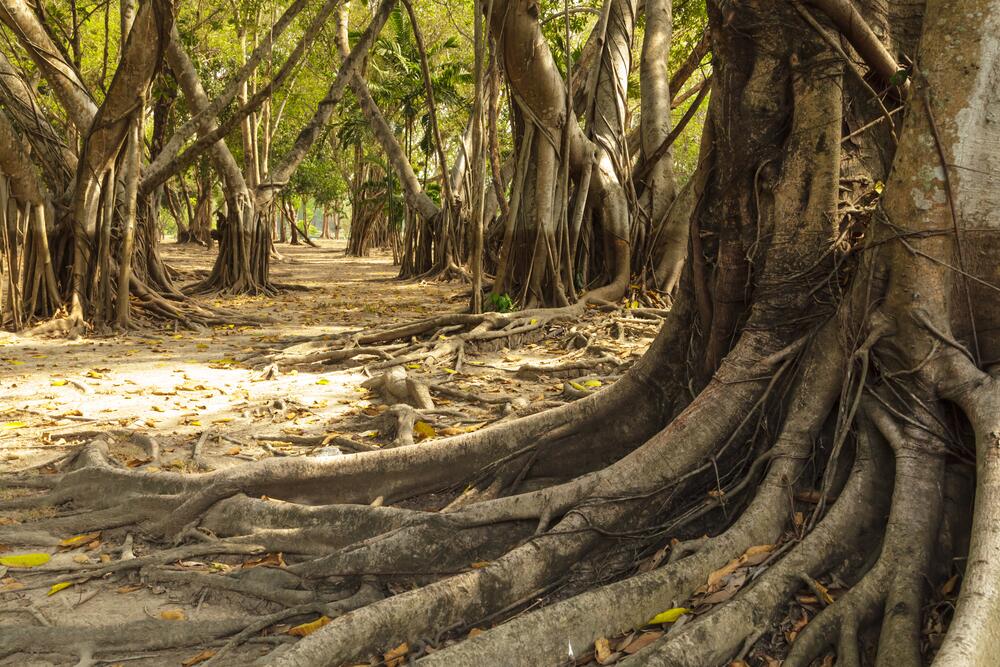 Один из самых старых баньянов растет в Индии уже больше 3 тысяч лет и состоит из 3 тысяч маленьких и 3 тысяч больших стволов высотой больше 60 метров каждый.