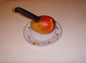 Приступим… Нужно помыть плоды манго и нарезать их кусочками.