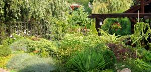 Но главное — это грамотно расположить всё желаемое на участке. Хозпостройки рекомендуется «прятать» за изгородями из туи (или бирючины). Огород тоже далеко не весь год живописен: стоит огородить его декоративным низким заборчиком (плетнём). Оставьте перед домом пятно газона, которое можно окантовать дорожкой, а за дорожкой разбить цветники, высадить среди цветов кустарники разного размера с разным цветом листвы, несколько хвойников шаровидных или колонновидных (в зимнее время будет за что взглядом зацепиться).