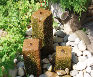Чтобы смотреть можно было не только в книгу, сделайте «журчалочку» с просверленным камнем, из которого бьёт фонтанчик, стекает по камню в галечный круг. Это украшение сада выйдет дешевле плёночного или бетонированного водоёма, а слух ласкает.