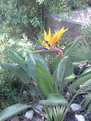 Есть у нас (в Израиле)очень красивый цветок, Ципор Ган а-Еден, в переводе - райская птица. Высокий, толстый, горделивый стебель, а на нем - большая разноцветная головка, очень похожая на птичью: с клювом, хохолком. Оказалось, что это родственник банана, только помельче. Его кусты (кусты этой травы) - в человеческий рост. И банановый цветок, действительно, очень похож, только не такой яркий.