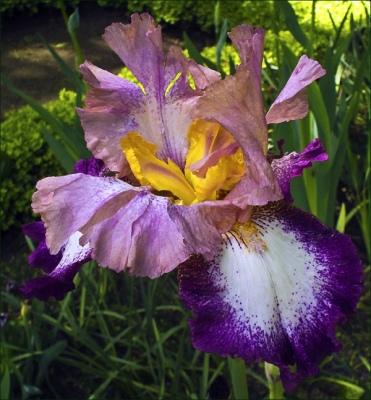 Если в вашем саду есть водоём, желательно начать с него и поселить там ирис болотный. Этот ирис — высокорослый, неприхотливый, может расти на одном месте более десяти лет, к яркому освещению не требователен. Окраска его цветков варьирует от белой до насыщенно-жёлтой; есть махровые формы. При выходе на сушу его размеры уменьшаются.