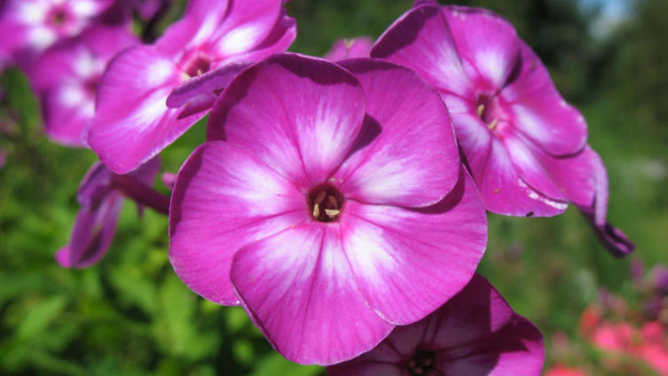В разгар лета вступает в свои права самый распространённый вид — флокс метельчатый. Его цветки, собранные в пышные метельчатые соцветия, имеют разнообразную окраску всех цветов радуги, кроме жёлтой. Чтобы продлить цветение до заморозков, необходимо своевременно удалять увядающие цветки — их можно просто стряхивать с соцветия.