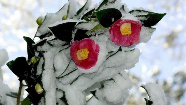 Камелии цветут круглый год на вечнозеленых деревьях. Посреди зимы они словно взрываются ослепительно-ярким пламенем, пестротой соцветий. Бархатные лепестки камелий с алым, бело-розовым, голубым, даже каштановым оттенком, восхищают любой человеческий взгляд. Другим цветочным созданиям это разноцветье навряд ли под силу.