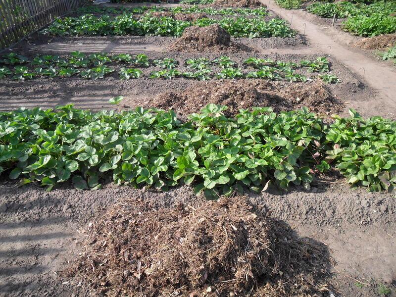 Мульчирование я тоже применяю, но только не так активно, как некоторые. Конечно, я, может быть, был бы не против насыпать каждый год толстый слой мульчи на каждую грядку, но вот проблема — а где ее взять в больших количествах? Ехать куда-нибудь за два десятка километров косить траву, собирать солому в полях (за ней ехать еще дальше)? Это чрезмерно трудоемко и никак мне не подходит, поэтому я использую в качестве мульчи только то, что удается собрать непосредственно на дачном участке. Только для клубники, озимых чеснока и лука я специально запасаю несколько мешков сосновой хвои, потому что без такой защиты она зимой просто вымерзнет, а ягоды при таком мульчировании всегда чистые. Благо, что сосновый бор у меня совсем рядышком с дачей, всего-то метров 300 до него.