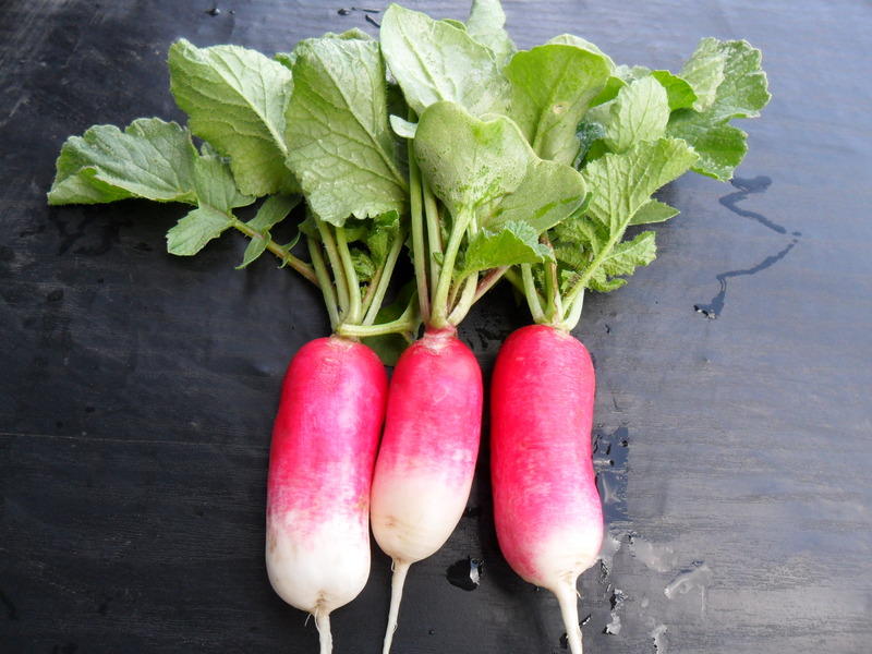 На вспаханном месте немедленно разбиваю обычную грядку и, не откладывая, засеваю ее редиской. Редиска после клубники растет очень хорошо, и к началу августа уже созревают первые ее корнеплоды, а еще через несколько дней можно убирать редиску полностью. Симпатичные, крепкие, вкусные корнеплоды редиски являются уже вторым урожаем с отмеченной грядки.