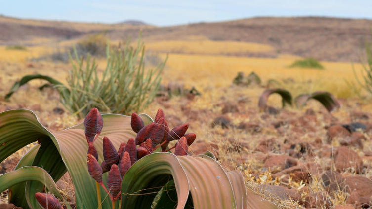 В таких условиях и произрастает вельвичия, которую учёные отнесли к реликтовым голосеменным деревьям, а это означает, что она является дальней родственницей наших сосен и елей. Продолжительность её жизни достигает 2000 лет, и за это время она выпускает всего два листа.