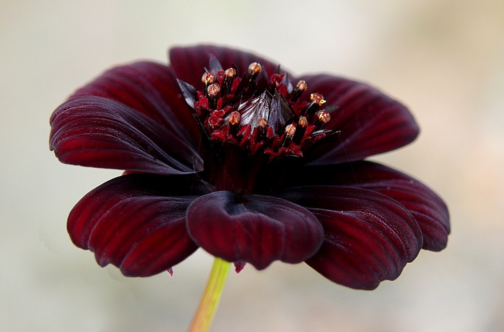 Чёрная космея — многолетнее растение, высота до полутора метров, цветки не крупные, до 4,5 см, от тёмно-красного до коричневого цвета. В саду красиво смотрится рядом с бордовыми розами.