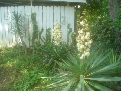 София Варган, mutual. Это цветущие Юкки. Я их развожу после научной первоапрельской шутки "Стреляющая юкка" о том, что она расцветает за одну ночь. Это не так и цветёт она редко, не каждый год.