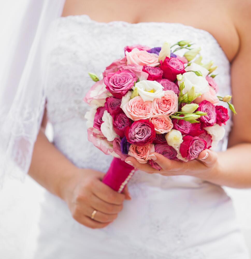 Букет из роз — классический вариант для свадьбы. Эти цветы как никакие другие подчеркнут нежный образ новобрачной. Благодаря объемным бутонам букет из роз легко собрать, он хорошо выглядит и подходит ко многим свадебным платьям. Кроме того, букет из роз — это идеальный выбор для невест, восприимчивых к запаху цветов, так как есть специальные сорта роз, лишенные аромата, а также гипоаллергенные.