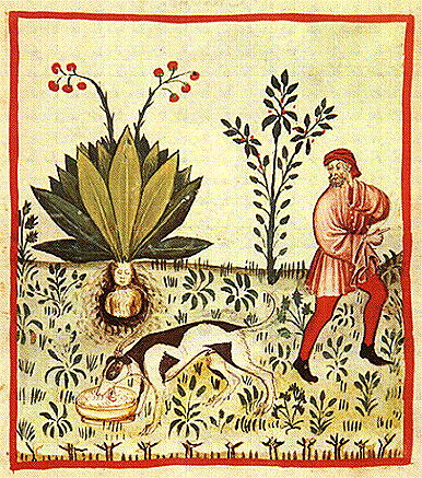 Также считали, что мандрагора вырастает на месте, где вешали приговорённых к смерти людей.