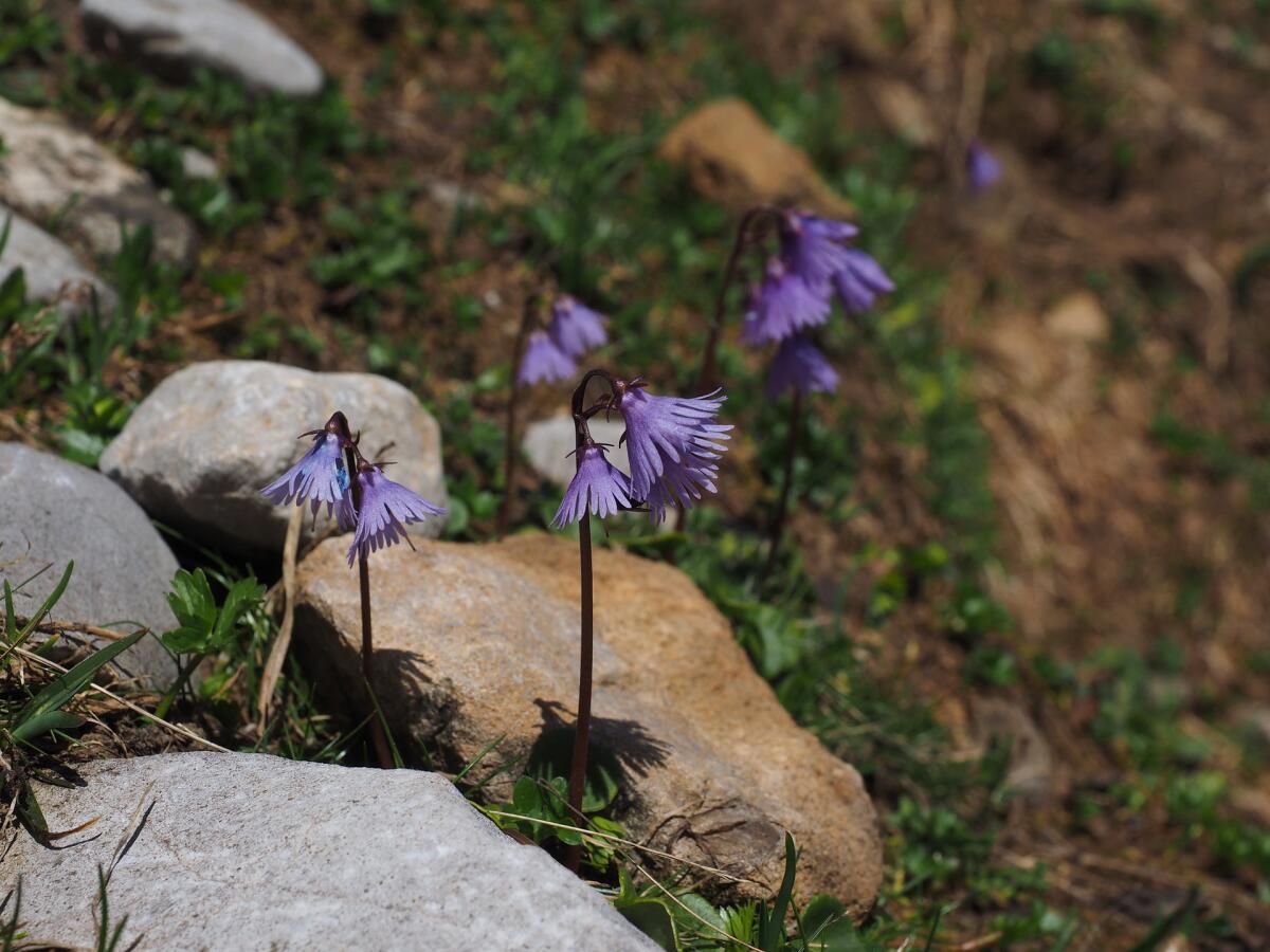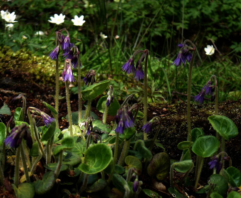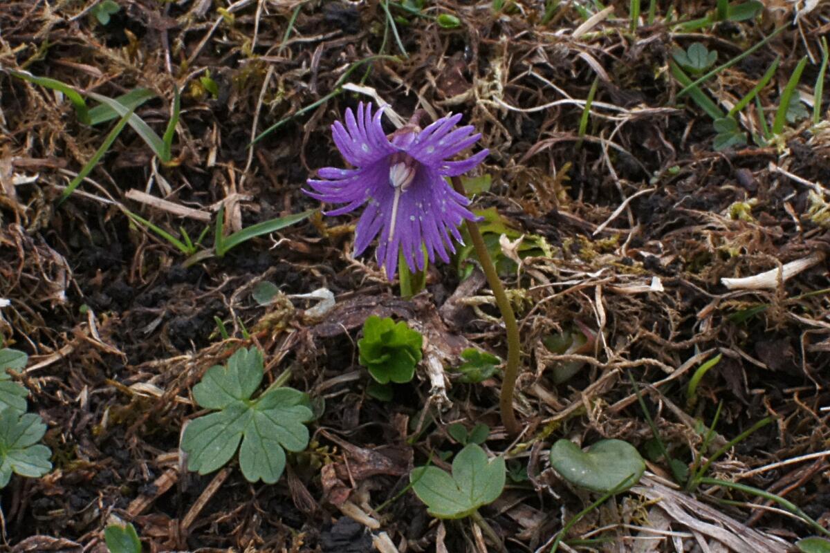 Похожа на карпатскую сольданелла альпийская, цветочки у неё лиловые, колокольчатые.