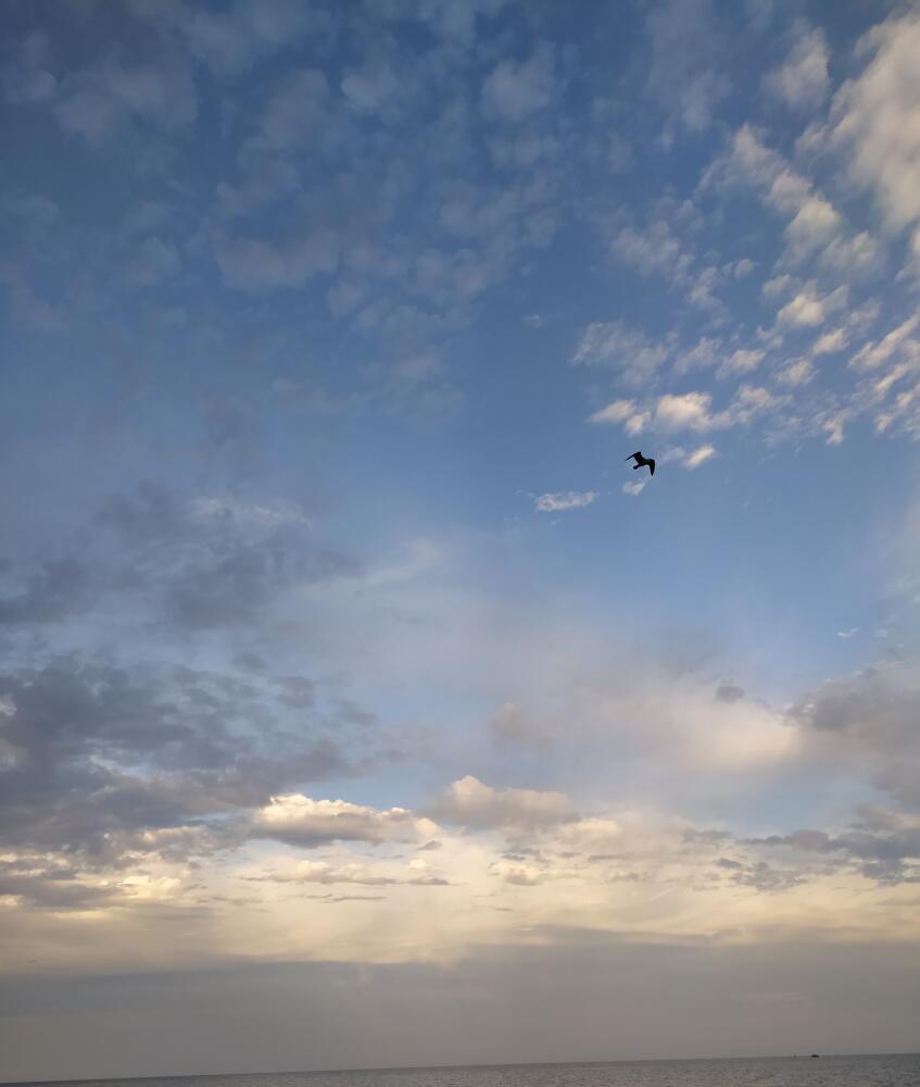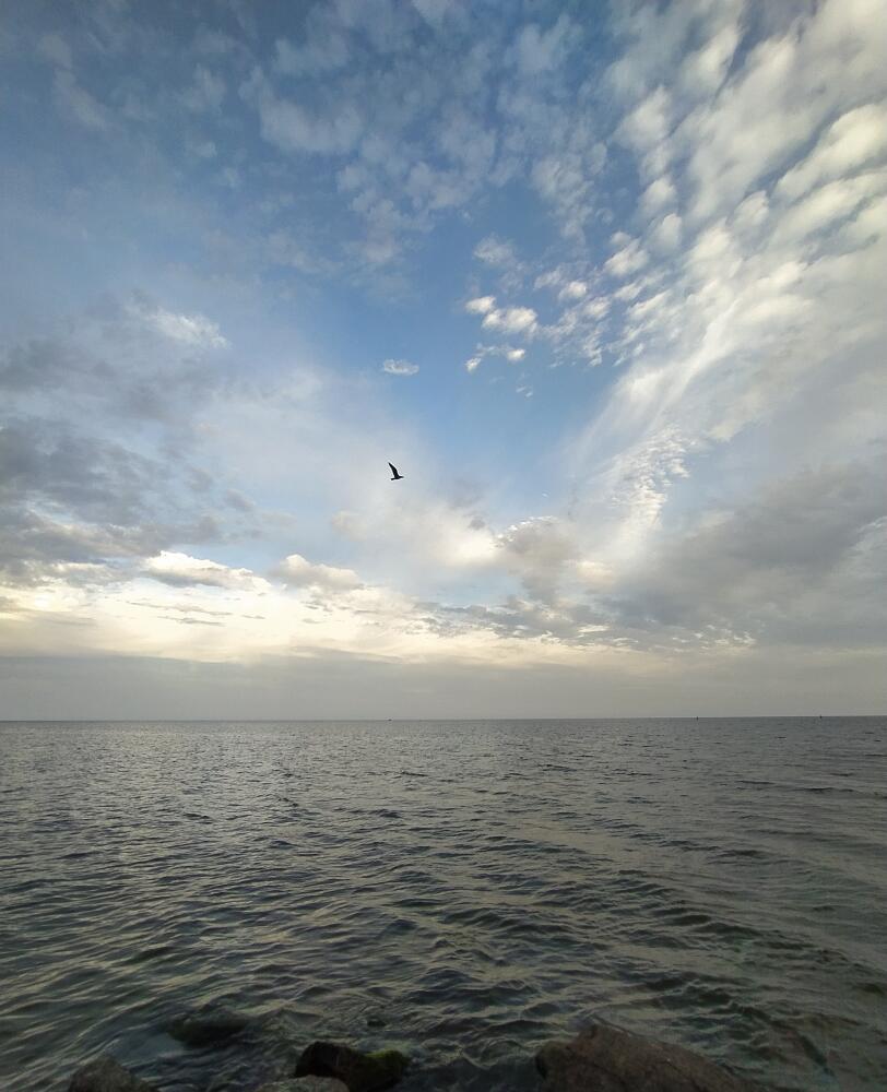 Народу там не было, разве что какая одинокая пара с игривым корги могла случайно забрести или одинокая, гигантская, как межгалактический корабль медуза-корнерот заплыть под ноги и космически покачать тебе в знак приветствия своими щупальцами. Чайки ракетами взлетали в синее, медленно наполнявшееся облаками небо, вдалеке маячил белый пароход, прозрачные волны тихо шелестели о песчаный берег, а заходящее, медленно умирающее солнце стремилось к горизонту…