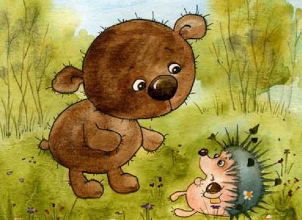 — Это потому, — терпеливо объяснял Ёжик медвежонку, — что я научился управлять своими колючками, а ты своим мехом ещё не научился. И потом, когда я вижу опасность, я выставляю свои колючки! Они меня защищают. А у тебя есть сильные лапы и острые зубы для защиты.