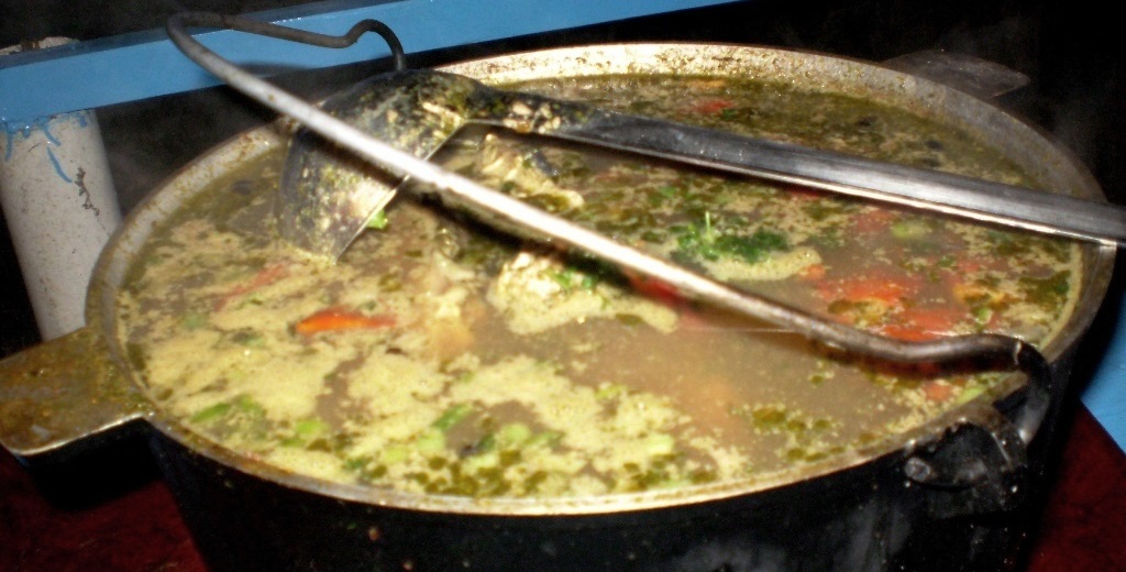 Когда всё было готово и ароматы разносились вокруг стана, рыбаки приглашали нас к общему столу, давали каждому краюху серого хлеба, обязательно деревянную ложку и полную миску горячего угощения. Как же это было вкусно! Самая вкусная еда: запах реки и дыма, специй, аромат ухи. И прекрасная обстановка, свежий воздух, летний закат, плеск воды, крики чаек. А старый рыбак-повар постоянно нахваливал своё блюдо и огромным деревянным черпаком подливал голодной ребятне горячую уху.