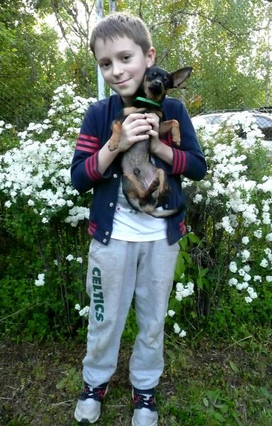 Он только что позавтракал и прибежал к нам со своим пёсиком, той-терьером Ачиком.