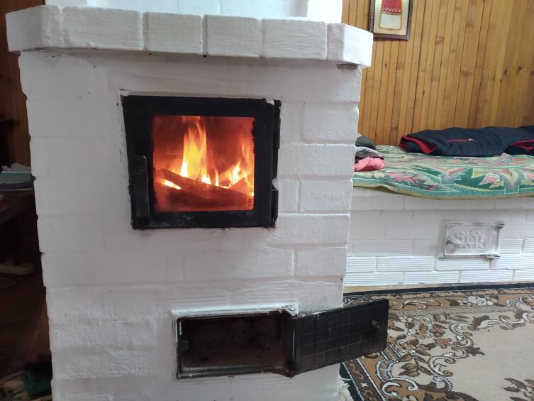 Ничего, пока хозяйка распаковывает сумки, растапливаю мини-камин, трубу сухим хворостом и тонкими дровами, заготовленными осенью. Вспыхивает пламя, меняется настроение от живого огня и приятного гула тяги трубы. Её прогрев обязателен при первой растопке, далее она ежедневно прогревается исходящим дымом.