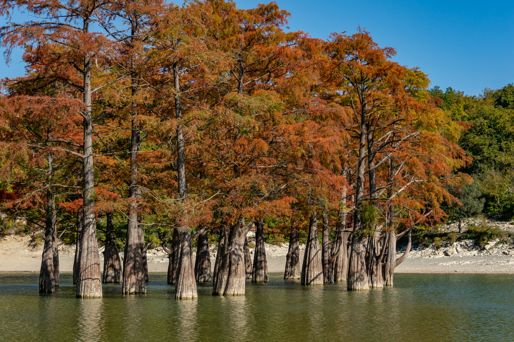 ** Болотные деревья — таксодиум двурядный, или болотный кипарис.
