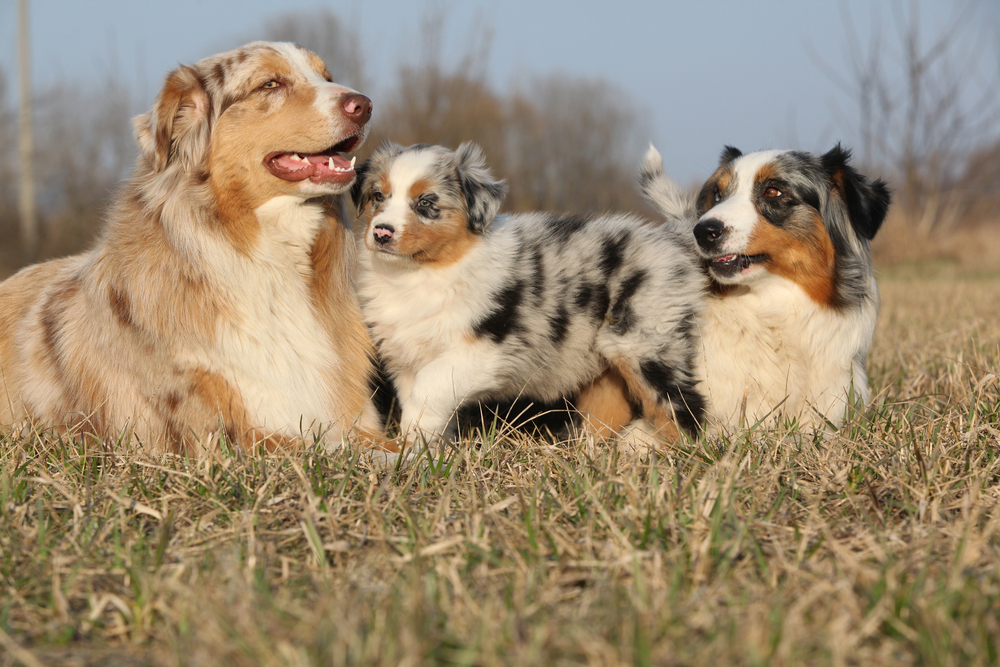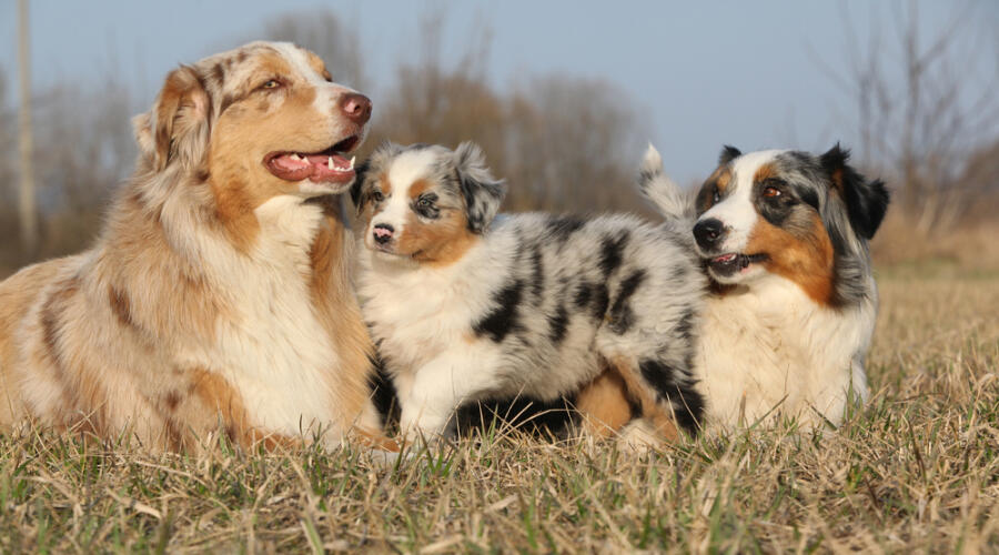 Щенки вылезают из-за широкой кормы Блинчика: