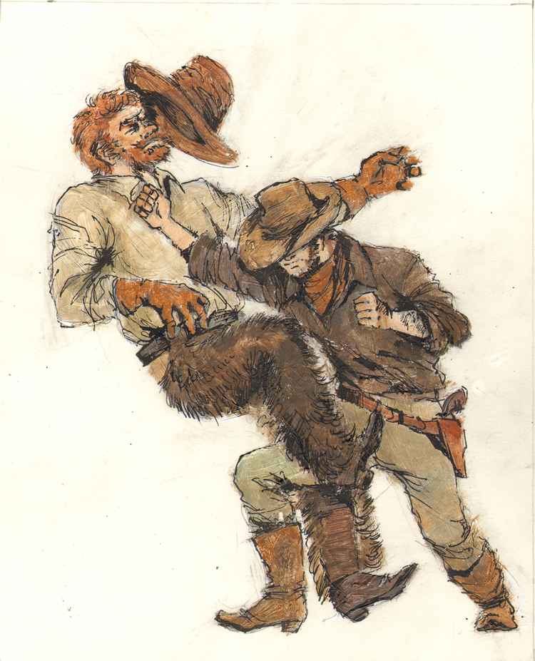 — Этот паршивец, — нежно сказал Росс, — самый лихой загонщик на все ковбойские лагеря. А уж дерется так, что только держись.