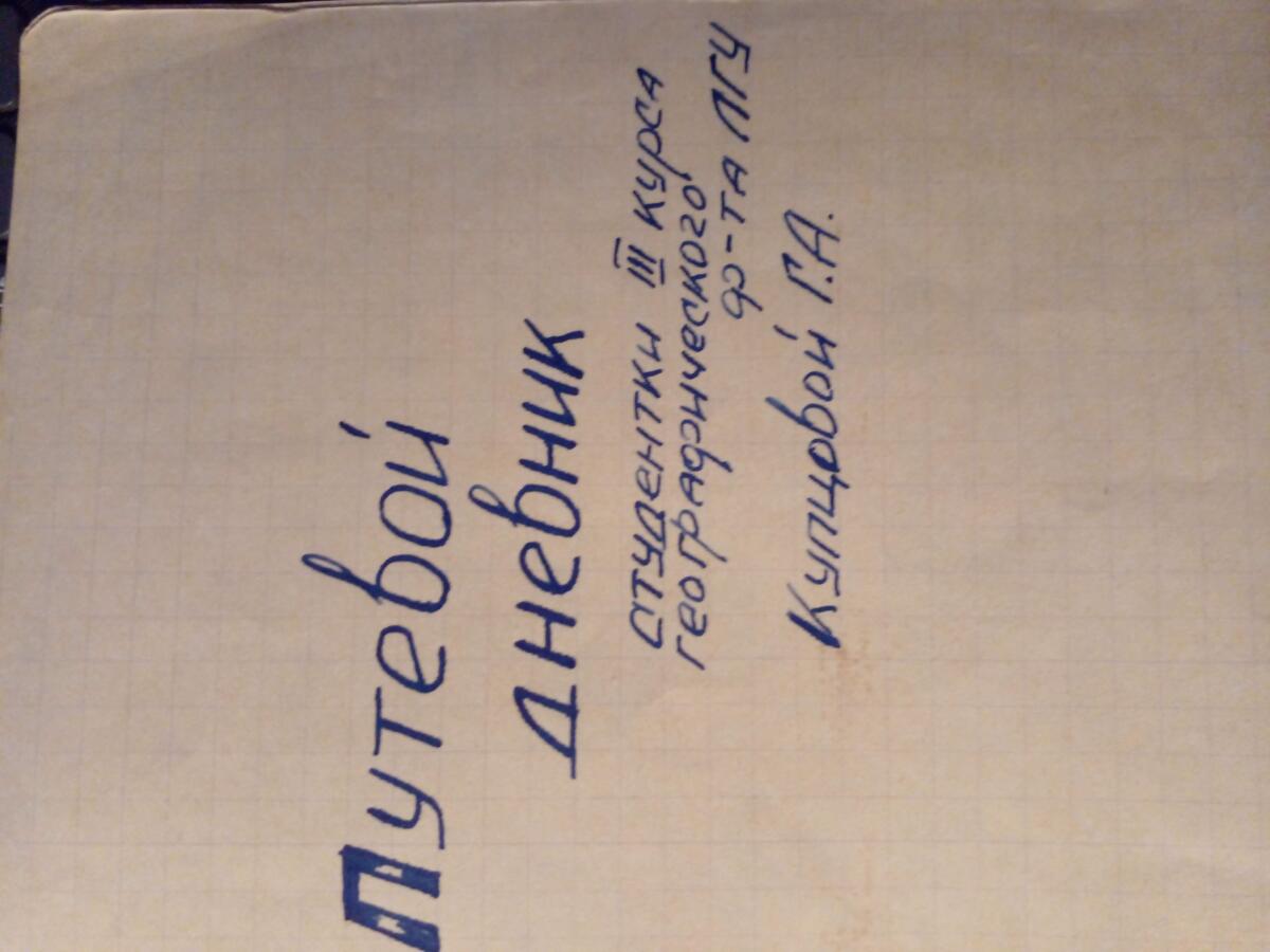 Разбирала я недавно свои архивы, разного рода записи, дневники, и нашла старую тетрадочку — путевой дневник 1959 года, который как-то сохранился, несмотря на многие перепетии в жизни и многочисленные переезды. В дневнике подробнейшим образом описана наша студенческая практика между 2 и 3 курсом университета.