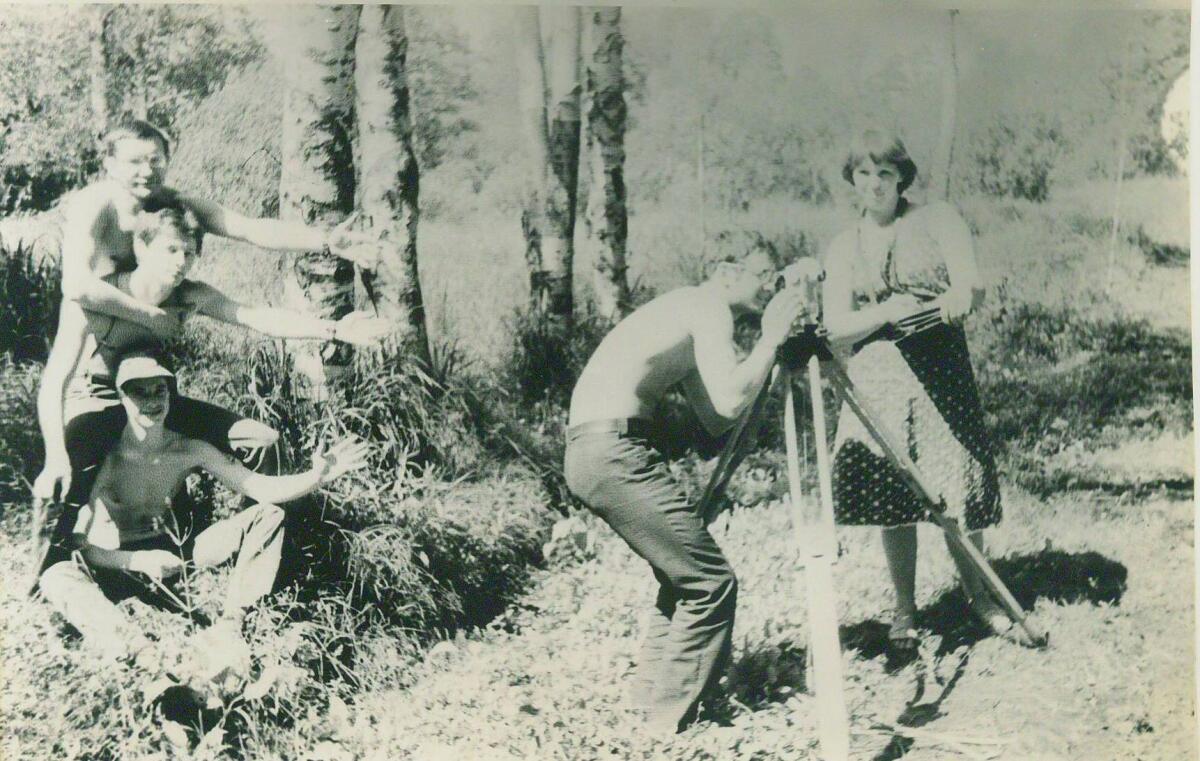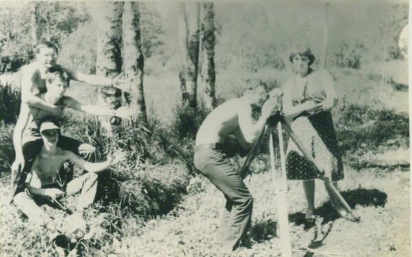 Это - наша практика по инженерной геодезии. Тоже лето. Июль. Питер, Озерки. Как видишь, погода стояла расчудесная, озера рядом, поэтому мы больше дурачились, чем работали с нивелиром и теодолитом.
