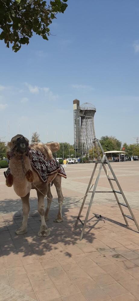 Вот, скажем, такой верблюд, поджидающий очередного клиента-наездника у древней крепости Арк в Старой Бухаре, разместившийся напротив смотровой башни (очередная гиперболоидная башня инженера Шухова), несомненно имеет больше шансов пополнить карман своего хозяина, чем простой его дикий собрат.