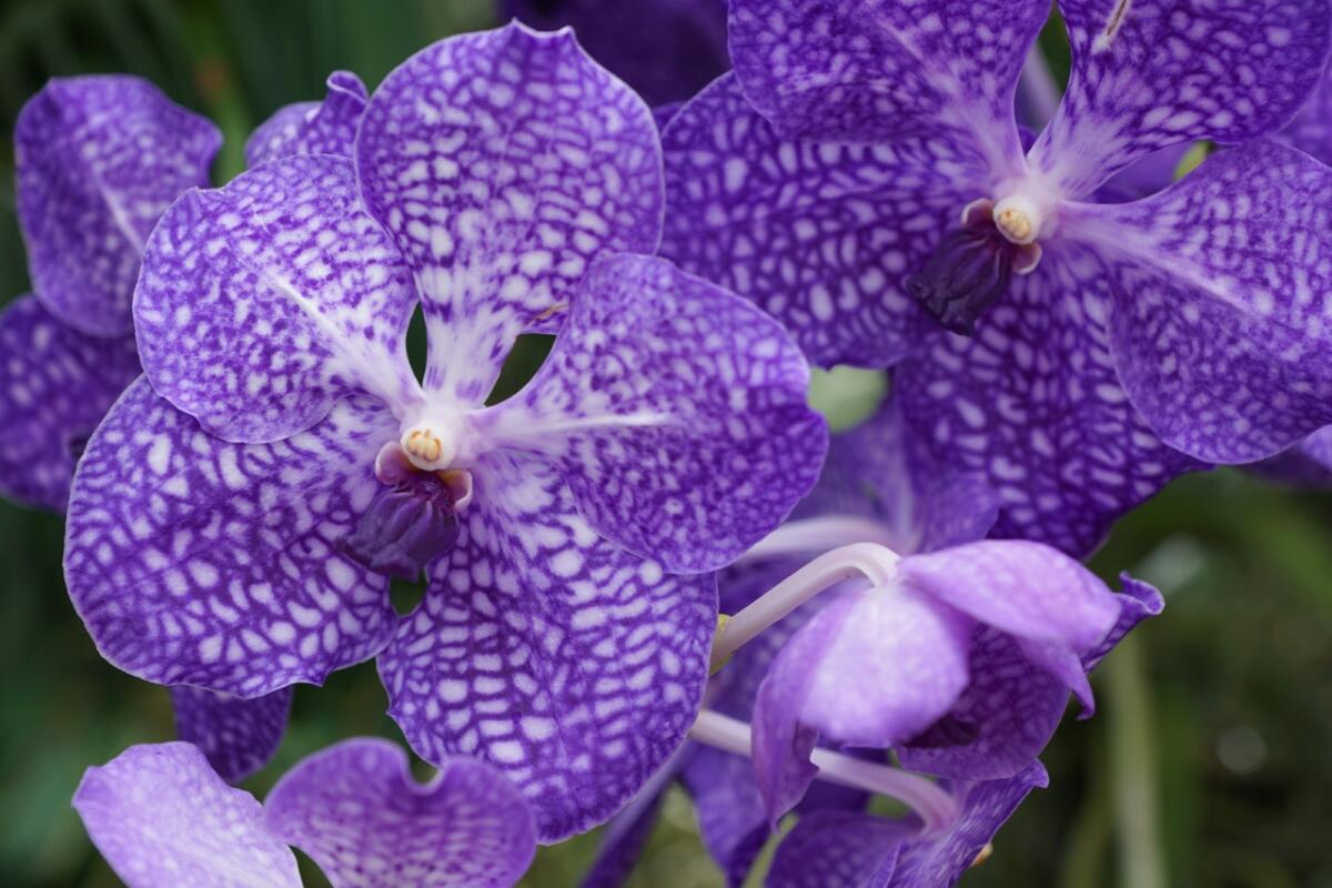 - Орхидея Ванда: эпифитная лиана с крупными цветами, её часто называют королевой орхидей.