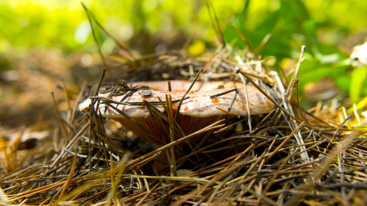Вот. Что тут за холмик небольшой на ровном тёмно-коричневом коврике опавшей листвы? А мы чуть сдвинем отдающий прелью покров в сторонку и под ним…