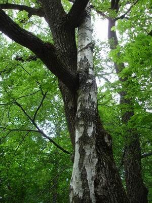 В музее-усадьбе "Ясная Поляна" есть удивительный феномен. Вплотную растут могучий дуб и нежная береза. Берёза обвивает ствол дуба! Когда я впервые это увидела, первая мысль была: "Чьи-то души так соединились!". Эту романтическую пару часто изображают на различных "яснополянских" сувенирах, картинах.