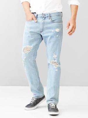 По запросу scraped jeans в гугле, сразу находятся как видео, где в пошивочном цехе специально протирают и царапают джинсы, так и предложения интернет-магазинов, где продаются джинсы известных брэндов. Тот же GAP. На официальном сайте. На английском языке.