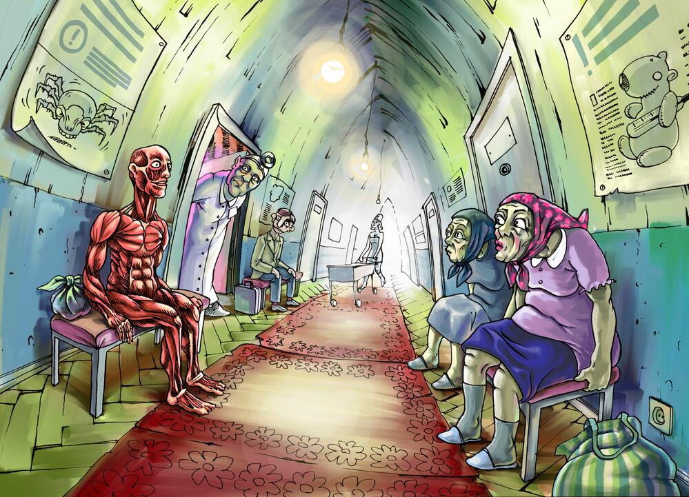 Контингент, скажу я вам, с виду безобидный и даже приличный. Большинство составляют дети с различного рода аллергией. Попадаются также загадочные импозантные молодые люди, но почему-то всегда с какими-либо татуировками. Глядя на них, невольно закрадывается мысль, что все это псевдоискусство как раз и есть источник их бед. В основном же это пожилые люди обоих полов: минимально — с герпесом, максимально — с раком кожи.