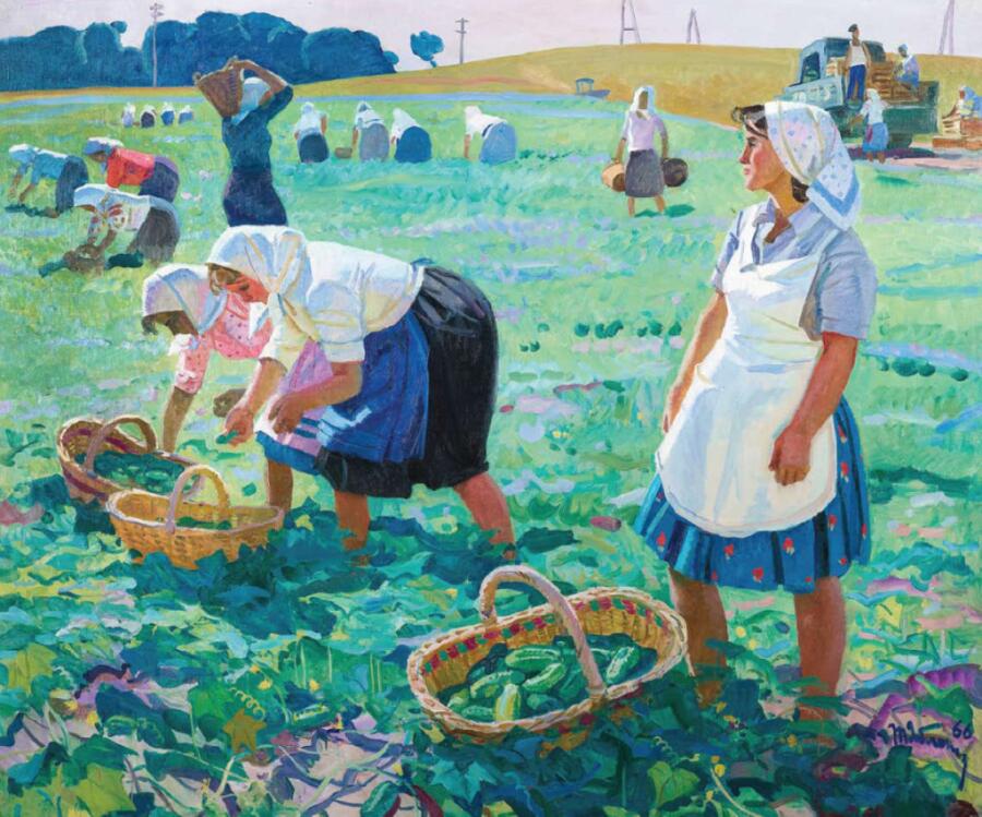 Очередной рабочий день. После подъема, зарядки и завтрака посылают нас «на огурцы». Но не такие огурцы, как у бабули, — на грядке, а типа, как виноград: столбики с горизонтально натянутой в несколько рядов толстой проволокой, к которой, собственно, и подвязаны огуречные стебли. Мы с приятелем идем вдоль этих столбиков (он с одной стороны, я с другой), тащим за собой по земле тарные деревянные ящики и бросаем в них сорванные со стеблей огурцы.