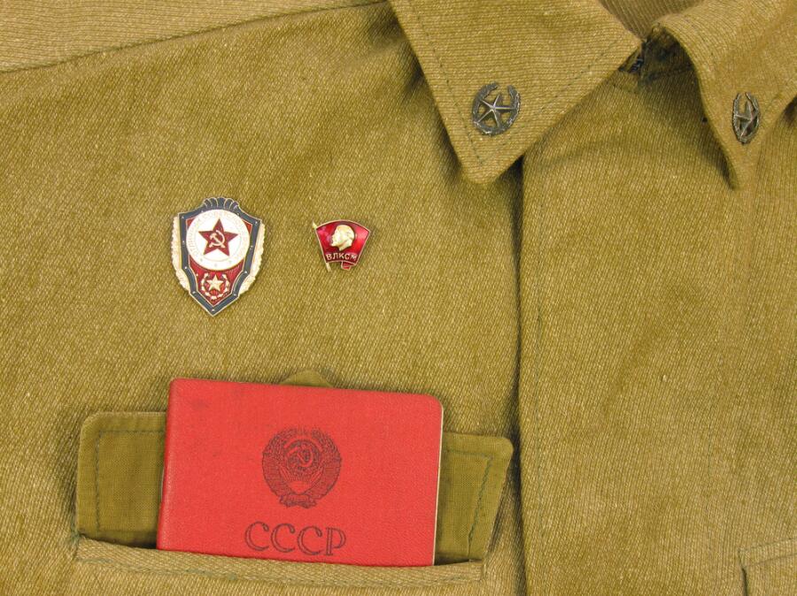 комсомольский значек располагается на воинской форме с лева на груди....