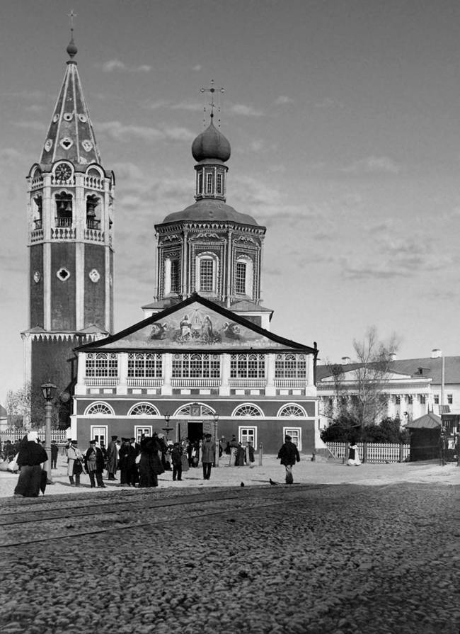 На этом старинном фото видны часы на колокольне