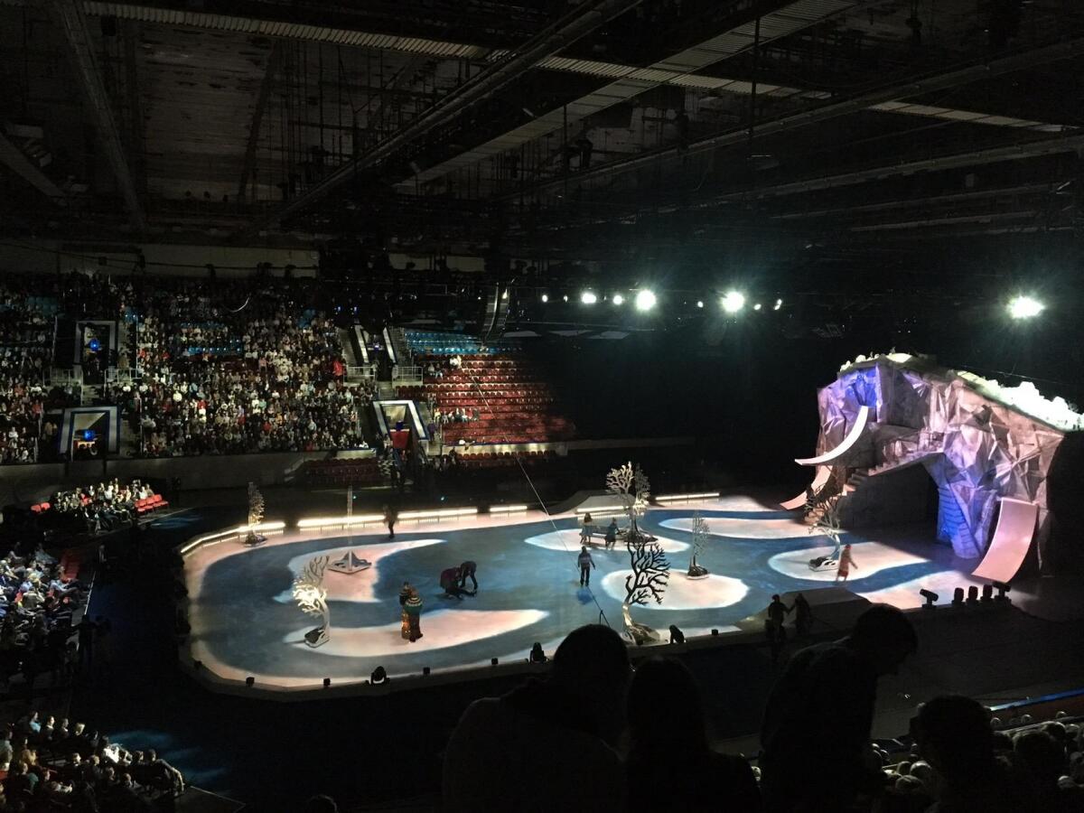 Все действие вытягивали две девчонки, великолепно владеющие акробатикой, и пара парней. Остальные артисты были на льду больше для массовости. Народ потихоньку разбегался во время антракта.