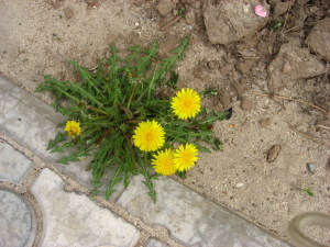 Молодость одуванчика. Его никто не сажал, рядом - кусты царственных роз. А он живет - вопреки!