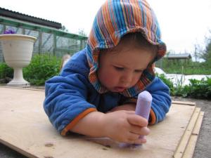 А как глаза зажигаются и душа отворяется, когда моею щедрой рукой столько инструментов дается. Сбоку еще фломастеры подкладываю, - чем хочешь, тем и рисуй. Могу и краски подкинуть, и мелки, коль есть доска или что-то подобающее.