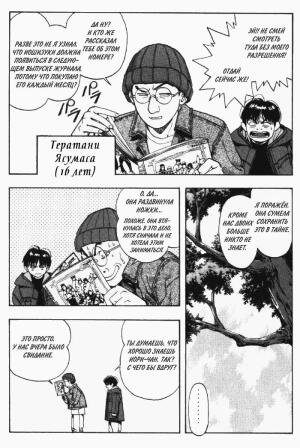 Марина Пересветова, да о подростках кто только не писал. Бенджамин Спок какой-нибудь или вот Агния Львовна Барто. Все писали! Раз в разговоре обронил, что вот есть фильм про продростков, учебный, его в немецких школах показывают - просто на куски рвать начали: "Дай посмотреть!" Я отделывался дежурной отговоркой: "Что я вам - школьник или немец?" Тем более что фильм касается чисто темы изменений в плане физиологии, а психология там никак не затрагивается, в общем интересы этих граждан лежат понятно в какой области, а если посмотреть "Здесь слышен океан" или почитать работы Катсура Масакадзу, то там очень многие ситуации из жизни подростков и душевные переживания показаны очень достоверно. Оку Хироя в HEN вообще просто показал своих одноклассников и их взаимоотношения, как он наблюдал их со стороны. Они по сравнению с ним были типа акселераты, он находил их поведение идиотским. Сам был достаточно уравновешен. У них в классе был парень - верста коломенская, не только по японским меркам, вечно на одну девочку напирал, как на буфет, а та была в общем скромная, думала больше об учёбе и домашних делах, в общем он каждый раз здорово огребал от неё. Сам был какой-то чумовой - то в вагон метро норовил на ходу впрыгнуть, то на кого-то прыгнуть прямо с мотоцикла. При этом ловкостью вовсе не отличался. А была девчонка - занималась в секции дзюдо и вообще была очень уравновешенная и хладнокровная, она спокойно как насковзь видела всех парней и творила с ними что хотела.