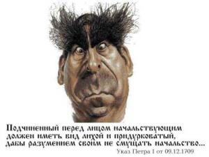А в другом указе Пётр велел: "Говорить не по-писанному, а только своими словами, дабы дурь каждого виднее была".