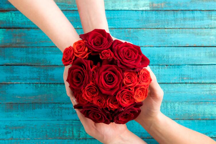 Любимой дарите ее любимые цветы (какие — постарайтесь ненавязчиво выяснить заранее). Если выяснить не удалось или по каким-то причинам вы не нашли её любимых цветов — беспроигрышным вариантом станут красные розы в объемном букете на длинных стеблях. Красные розы являются символом любви и страсти. Если вы не женаты и встречаетесь не слишком давно — выбирайте алые или чайные розы.
