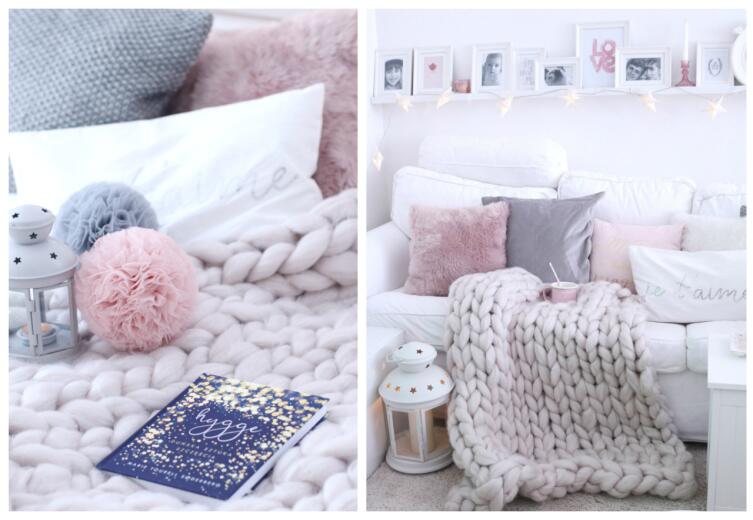 Помимо освещения и цвета, важную роль в создании интерьера по Hygge играют аксессуары. Их не должно быть много: нагромождение вещей (хоть и в стиле Hygge) сделает обстановку «тяжелой», захламленной и лишенной воздуха. Лучше остановиться на немногих наиболее приглянувшихся вещах. Среди них в обязательном порядке должен быть текстиль: будь то уютный плед или мягкие декоративные подушки. Материалы предпочтительнее натуральные и приятные на ощупь.