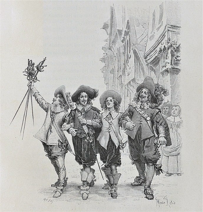 Д'Артаньян, Атос, Арамис и Портос, иллюстрация Мориса Лелуара, 1894 г.