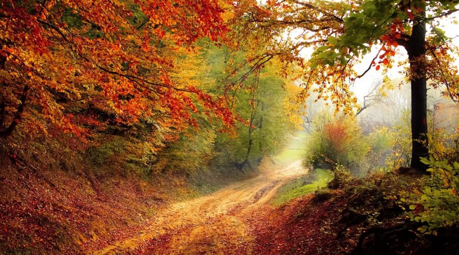 Треугольники и ритм. В листопаде почти всё — про повтор форм. Ищите три ключевых пятна цвета (например, три кроны) и сводите их в диагональ.
