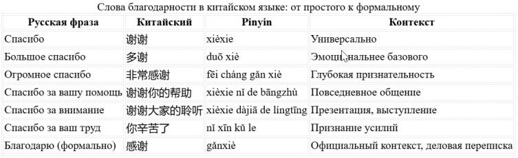 Для благодарности за конкретные действия в китайском есть готовые слова и фразы: