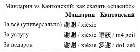 - Отличается ли «спасибо» в мандарине и кантонском диалекте